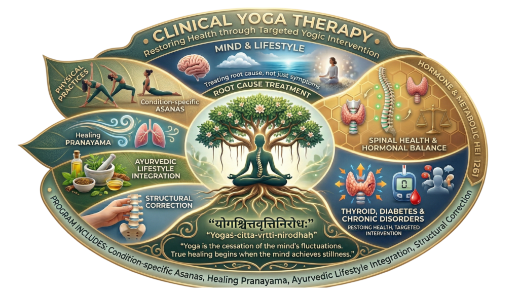 Restoring Health through Targeted Yogic Intervention Our personalized therapy modules address chronic lifestyle disorders by treating the root cause, not just the symptoms. We specialize in managing anxiety, spinal health, thyroid imbalances, diabetes, and hormonal irregularities.